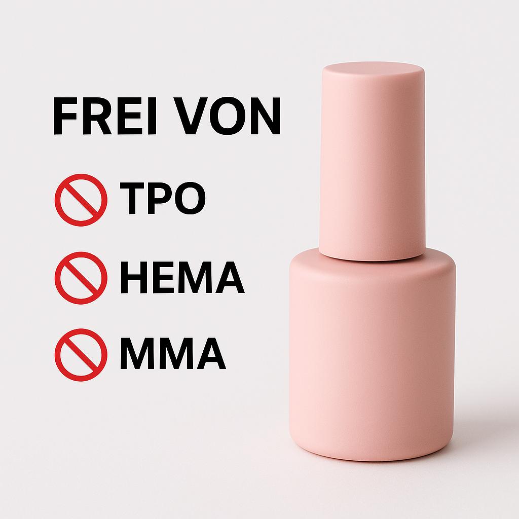 Damit sind unsere neuen Produkte frei von den Stoffen, die für die meisten allergischen Reaktionen in der Nagelbranche verantwortlich sind.